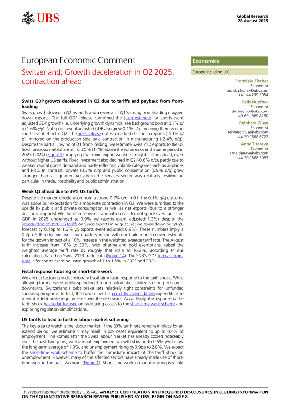 【UBS AG】【202508】Switzerland Growth deceleration in Q2 2025, contraction ahead-11页