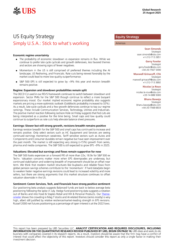 【UBS Securities LLC】【202508】Simply U.S.A. Stick to what's working-19页