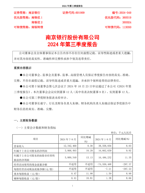 【南京银行股份有限公司】【2024】2024年第三季度报告-14页