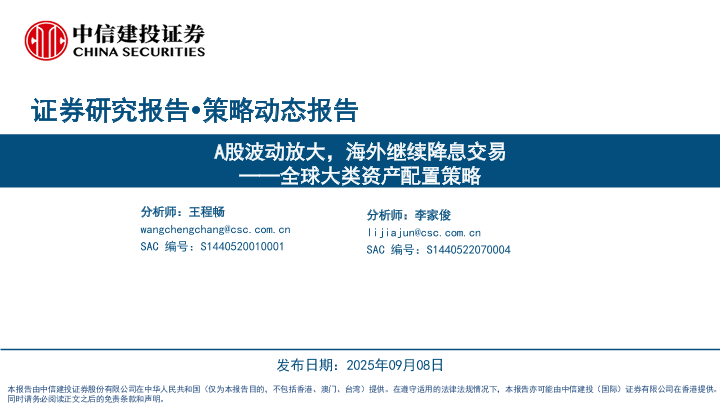 【中信建投证券】【202509】A股波动放大,海外继续降息交易——全球大类资产配置策略-25页