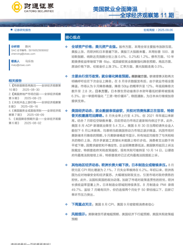 宏观经济 全球市场 货币政策 就业数据 关税政策