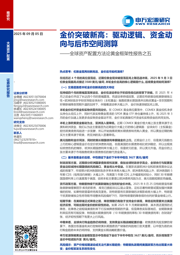 【申万宏源】【202509】金价突破新高:驱动逻辑、资金动向与后市空间测算-11页