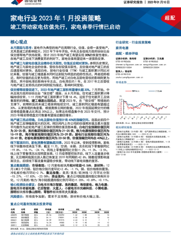 【国信证券】【20230110】家电行业2023年1月投资策略:竣工带动家电估值先行,家电春季行情已启动-20页