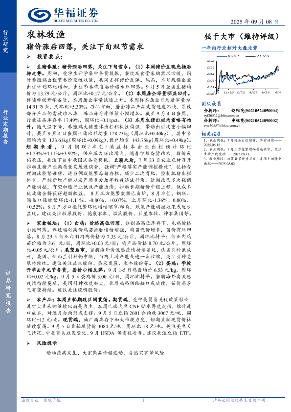 【华福证券】【202509】农林牧渔行业定期报告:猪价涨后回落,关注下旬双节需求-11页
