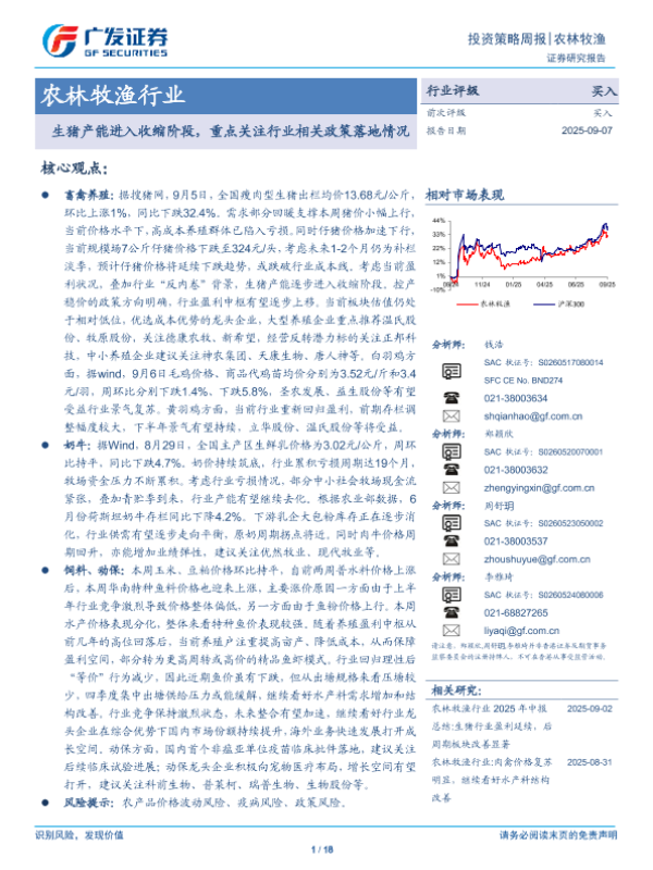 【广发证券】【202509】农林牧渔行业:生猪产能进入收缩阶段,重点关注行业相关政策落地情况-18页