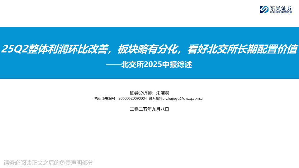 【东吴证券】【202509】北交所2025中报综述:25Q2整体利润环比改善,板块略有分化,看好北交所长期配置价值-36页