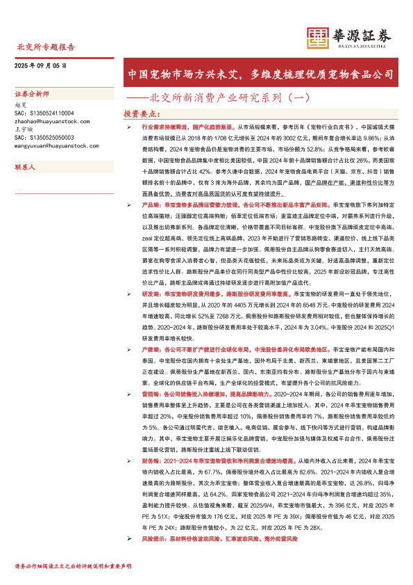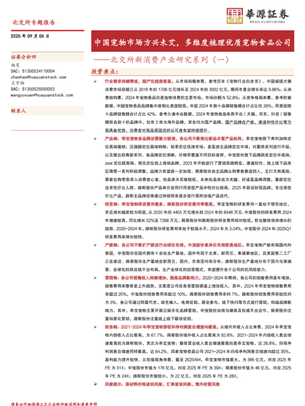 【华源证券】【202509】中国宠物市场方兴未艾,多维度梳理优质宠物食品公司-30页
