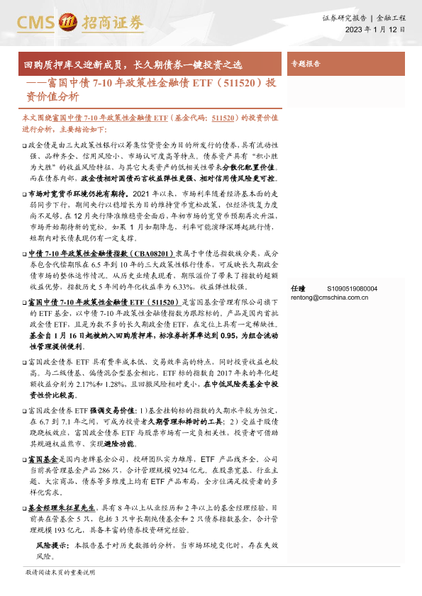 【海通证券】【20230112】富国中债7-10年政策性金融债ETF(511520)投资价值分析:回购质押库又迎新成员,长久期债券一键投资之选-18页