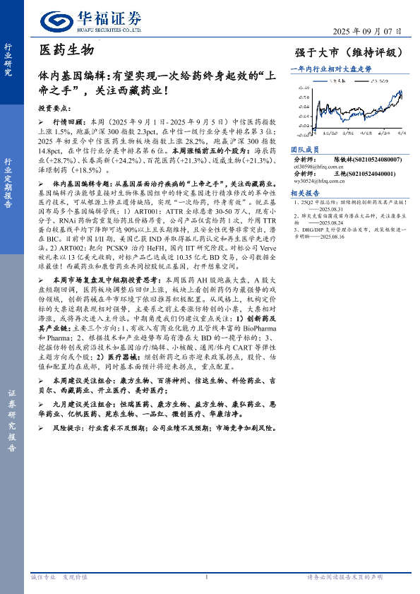 【华福证券】【202509】医药生物行业体内基因编辑:有望实现一次给药终身起效的“上帝之手”,关注西藏药业!-16页