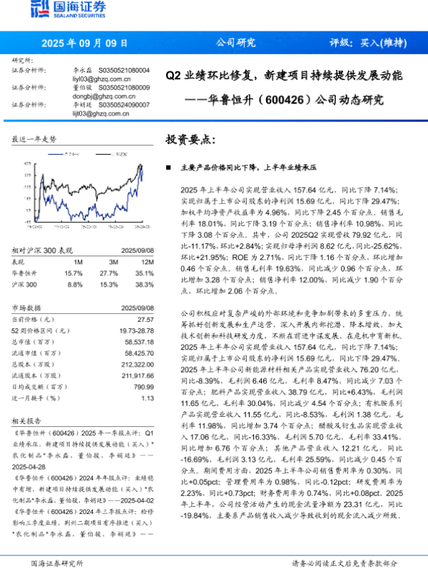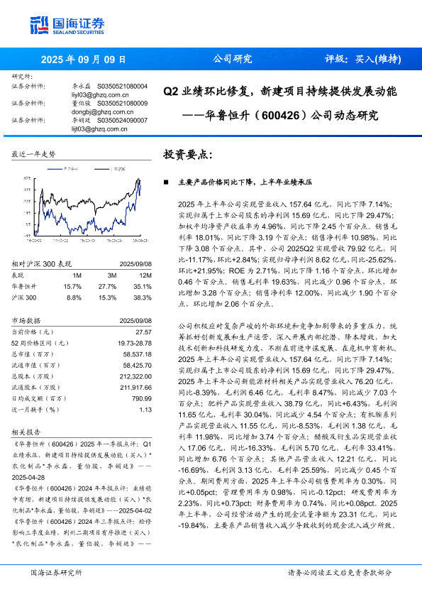 【国海证券】【202509】Q2业绩环比修复,新建项目持续提供发展动能——华鲁恒升(600426)公司动态研究-11页
