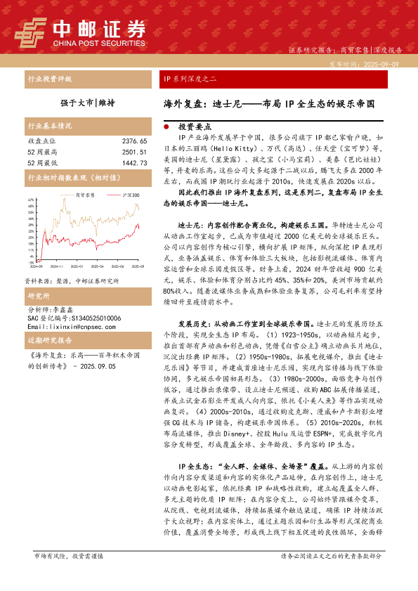 【中邮证券】【202509】商贸零售行业IP系列深度之二,海外复盘:迪士尼——布局IP全生态的娱乐帝国-24页