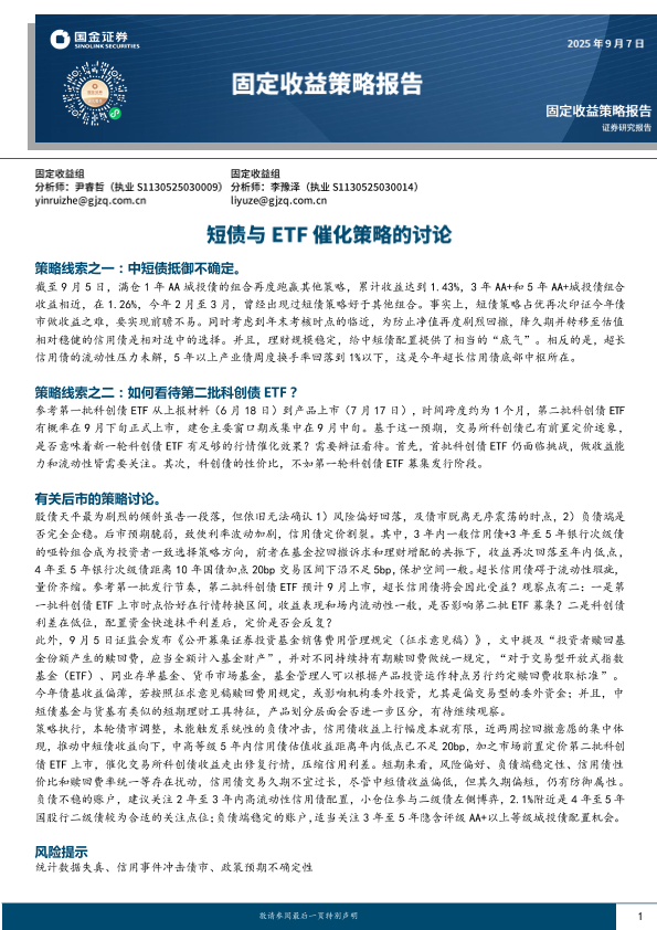 【国金证券】【202409】固定收益策略报告:短债与ETF催化策略的讨论-16页