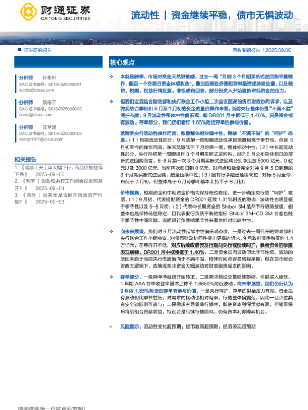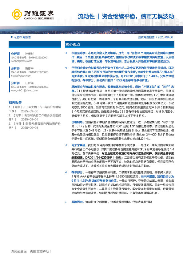 【财通证券】【202509】流动性|资金继续平稳,债市无惧波动-23页