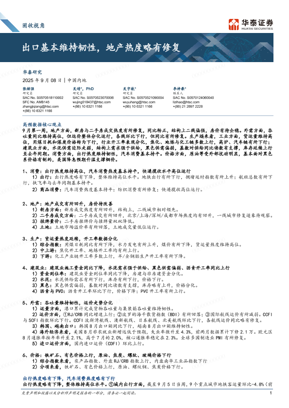 【华泰证券】【202509】固收视角:出口基本维持韧性,地产热度略有修复-14页
