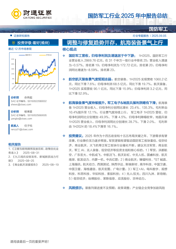 【财通证券】【202509】国防军工行业2025年中报告总结:调整与修复趋势并存,航海装备景气上行-24页