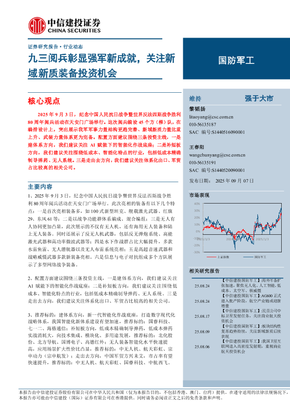 【中信建投证券】【202509】国防军工行业:九三阅兵彰显强军新成就,关注新域新质装备投资机会-35页