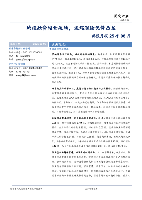 【华安证券】【202509】城投融资缩量延续,短端避险优势凸显-18页