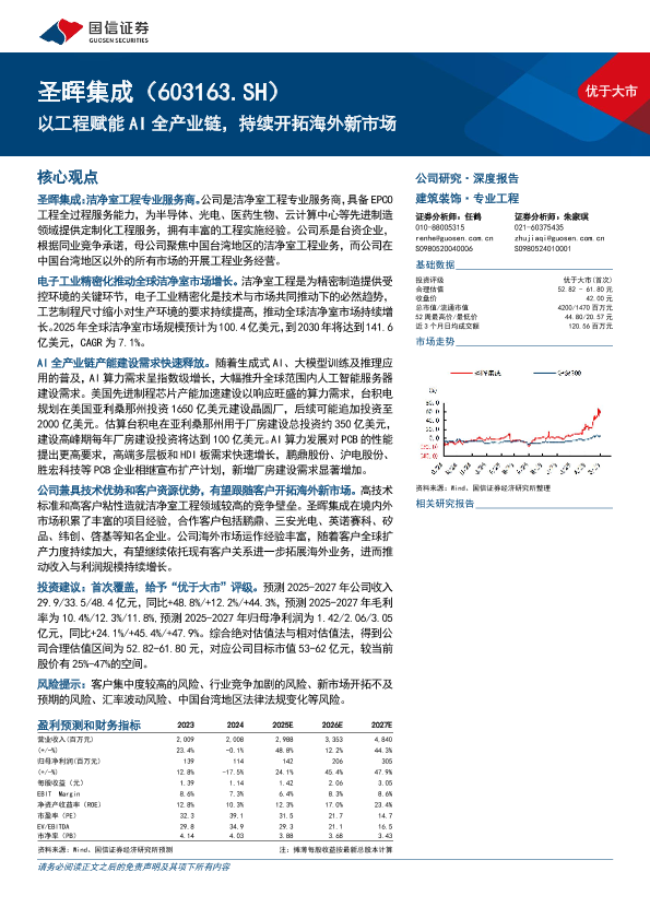 估值分析 AI产业链 半导体 洁净室工程 海外市场