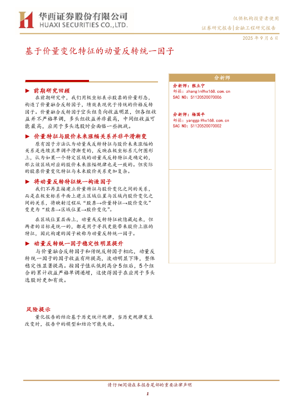 【华西证券】【202509】基于价量变化特征的动量反转统一因子-15页
