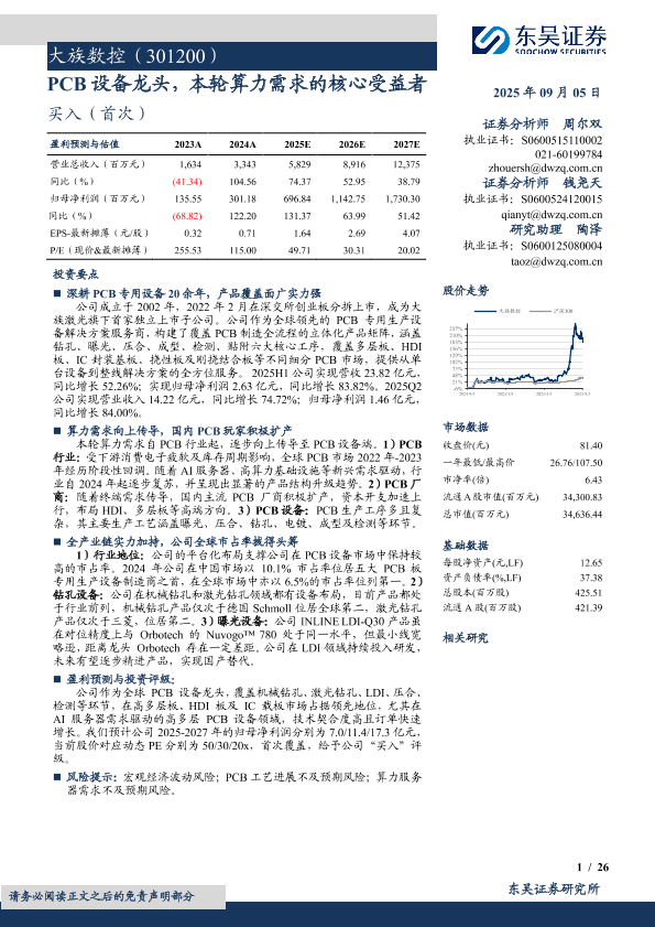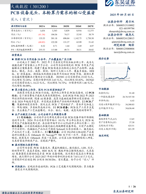 【东吴证券】【202509】大族数控(301200)PCB设备龙头,本轮算力需求的核心受益者-26页