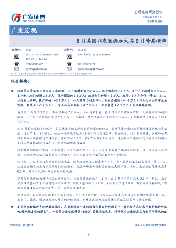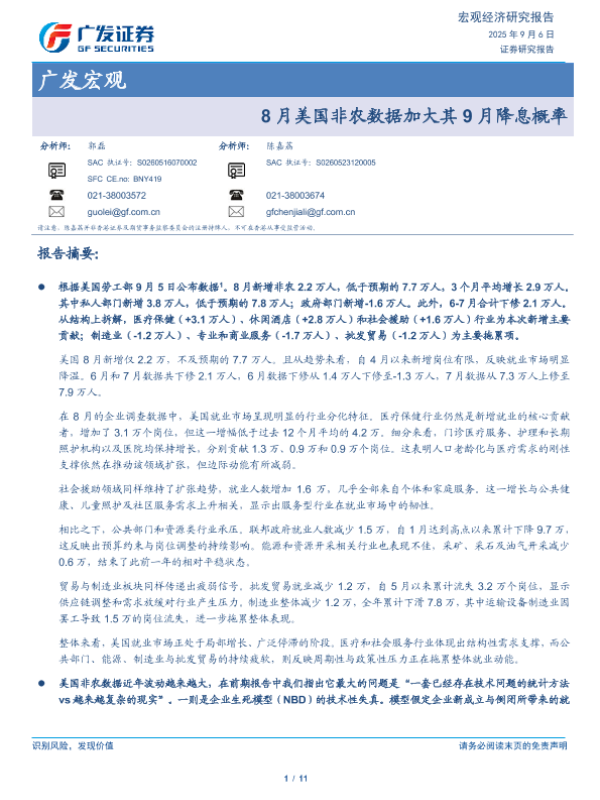 【广发证券】【202509】8月美国非农数据加大其9月降息概率-11页