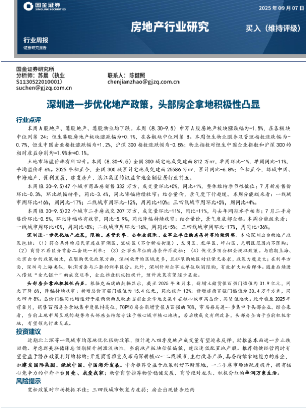 【国金证券】【202509】房地产行业研究:深圳进一步优化地产政策,头部房企拿地积极性凸显-19页