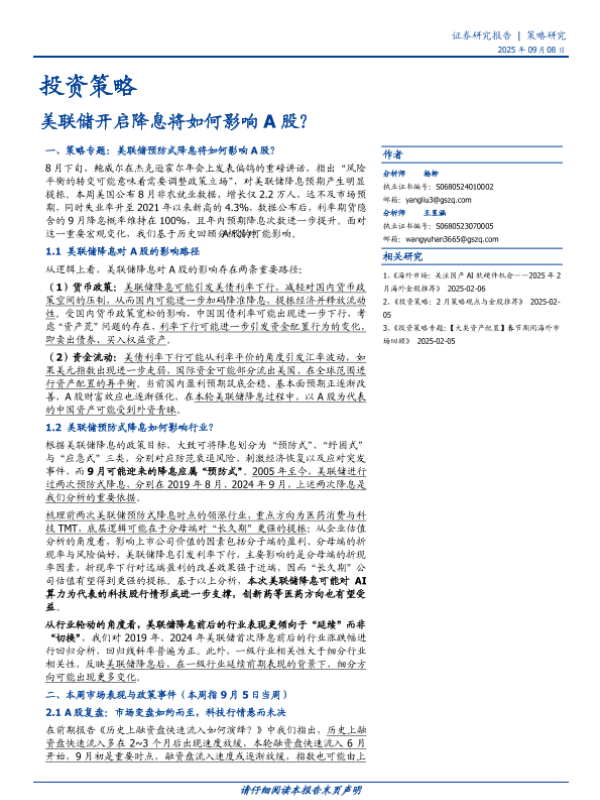 【国盛证券】【202509】投资策略:美联储开启降息将如何影响A股?-15页