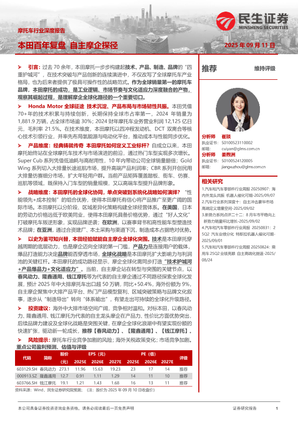 【民生证券】【202509】摩托车行业深度报告:本田百年复盘,自主摩企探径-76页