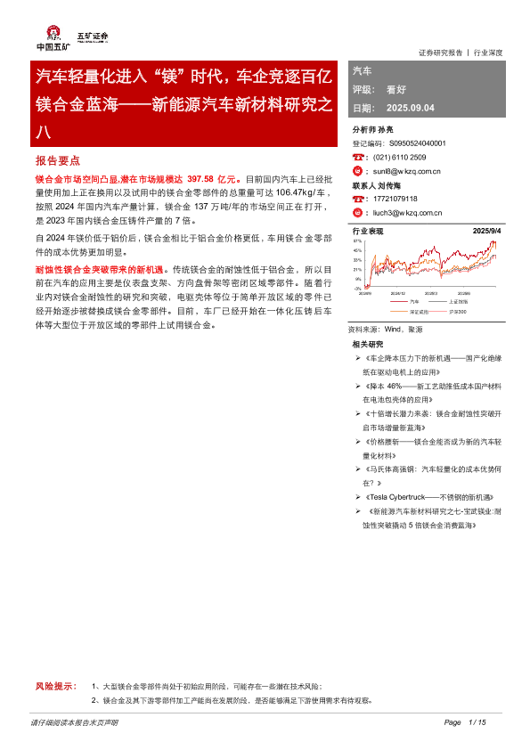 【五矿证券】【202509】汽车轻量化进入“镁”时代,车企竞逐百亿 镁合金蓝海——新能源汽车新材料研究之 八-15页