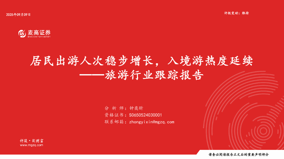 【麦高证券】【202509】旅游行业跟踪报告:居民出游人次稳步增长,入境游热度延续-23页