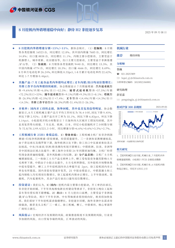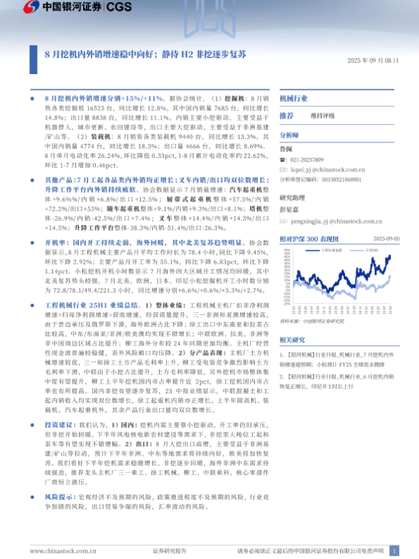 【银河证券】【202509】8月挖机内外销增速稳中向好;静待H2非挖逐步复苏-23页