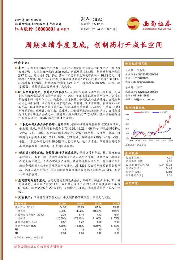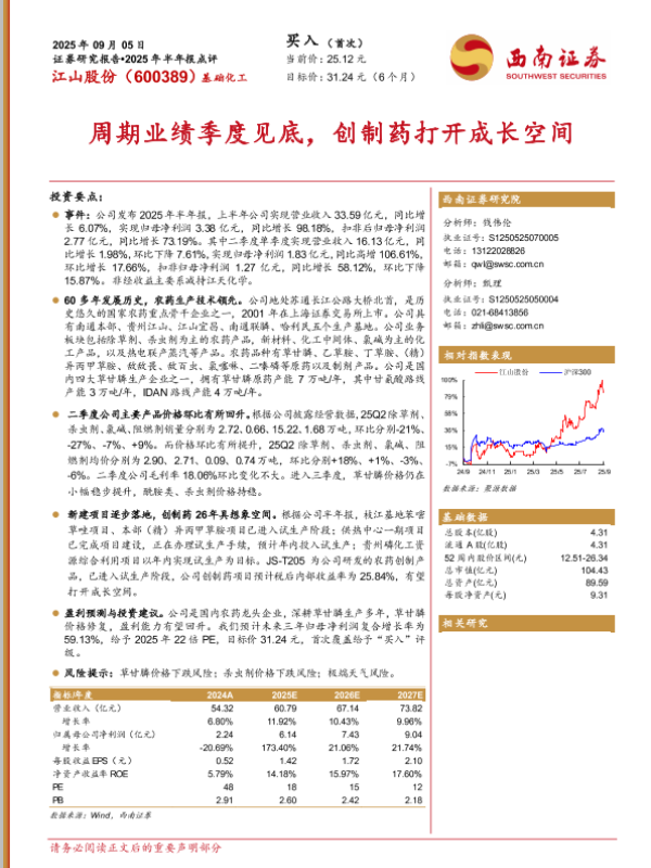 【西南证券】【202509】2025年半年报点评:周期业绩季度见底,创制药打开成长空间-12页