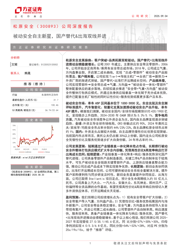 【方正证券】【202509】松原安全(300893)公司深度报告:被动安全自主新星,国产替代&出海双线并进-36页