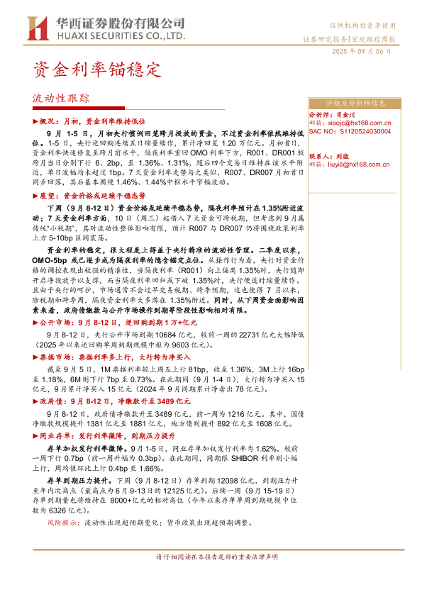 【华西证券】【202509】流动性跟踪:资金利率锚稳定-17页
