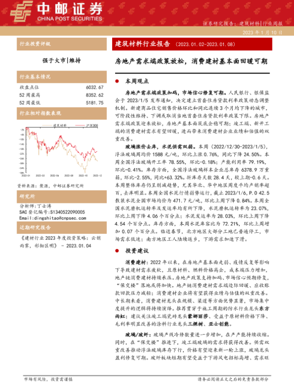 【中邮证券】【20230110】建筑材料行业报告:房地产需求端政策放松,消费建材基本面回暖可期-15页