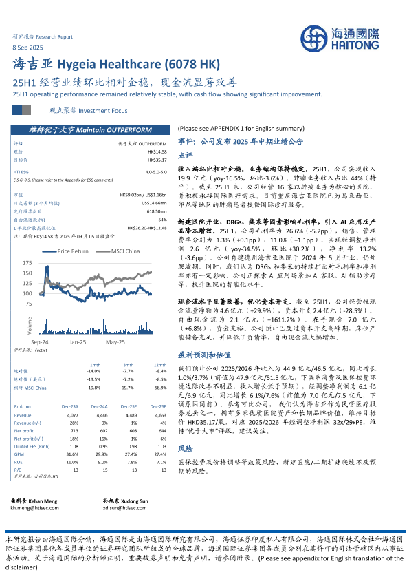 【海通国际】【202509】海吉亚(06078.HK)25H1经营业绩环比相对企稳,现金流显著改善-12页