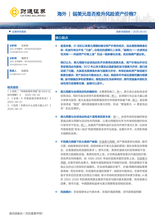 【财通证券】【202509】海外|弱美元是否推升风险资产价格?-20页