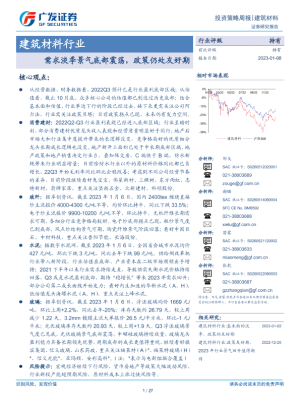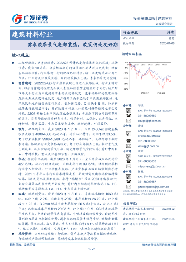 【广发证券】【20230108】建筑材料行业:需求淡季景气底部震荡,政策仍处友好期-27页