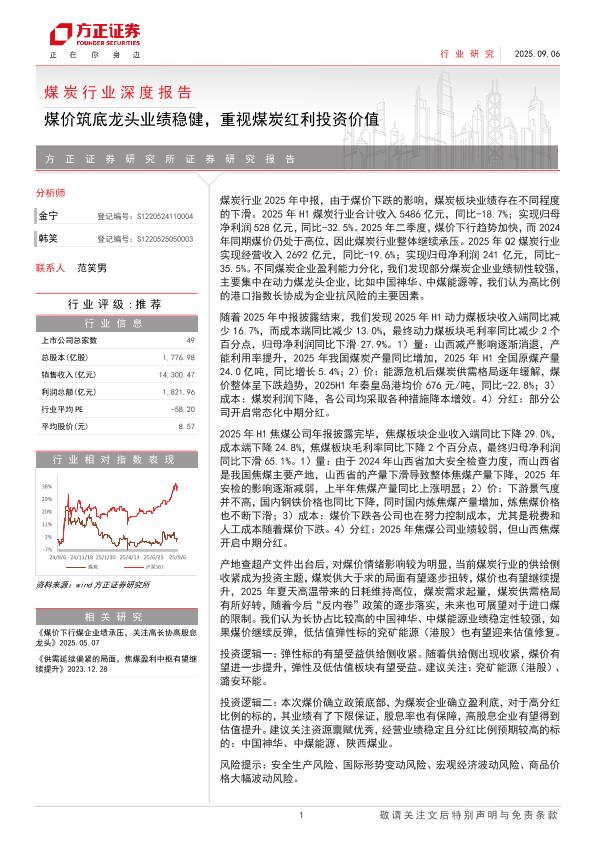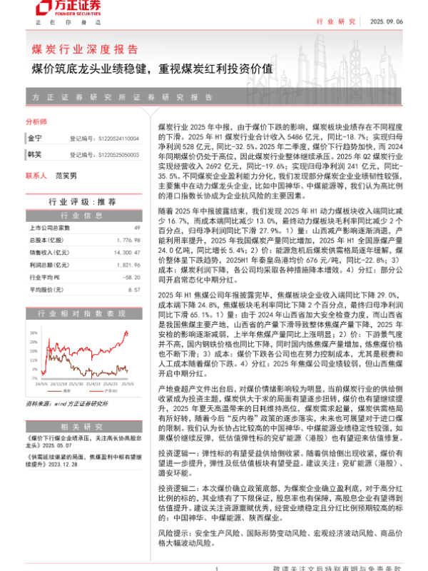 【方正证券】【202509】煤炭行业深度报告 煤价筑底龙头业绩稳健,重视煤炭红利投资价值-22页