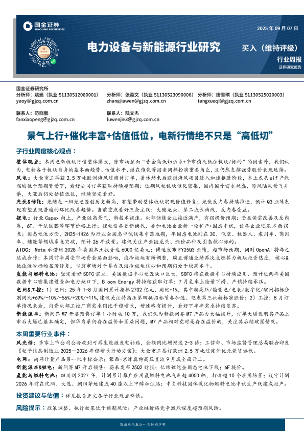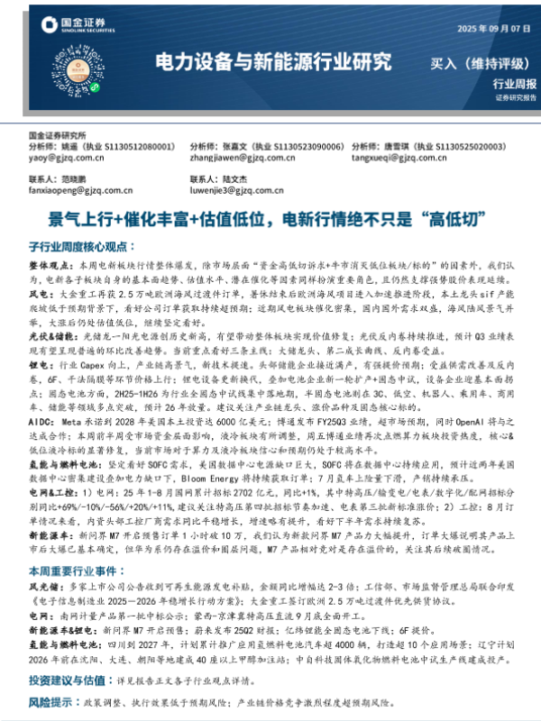 【国金证券】【202509】电力设备与新能源行业研究:景气上行%2b催化丰富%2b估值低位,电新行情绝不只是“高低切”-14页