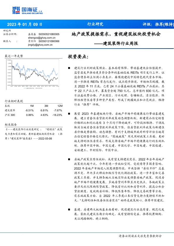 【国海证券】【20230109】建筑装饰行业周报:地产政策提振需求,重视建筑板块投资机会-14页