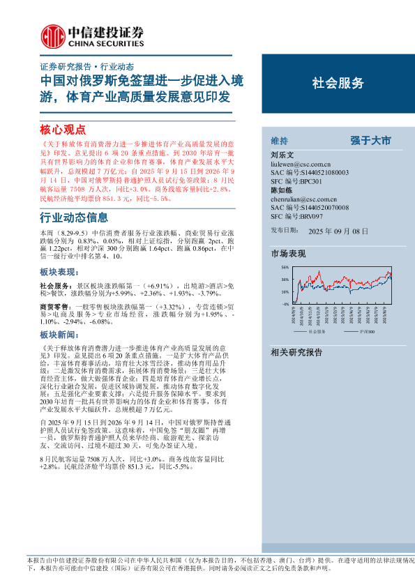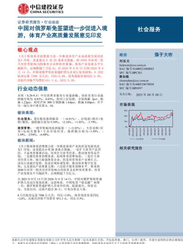 【中信建投证券】【202509】中国对俄罗斯免签望进一步促进入境游,体育产业高质量发展意见印发-25页