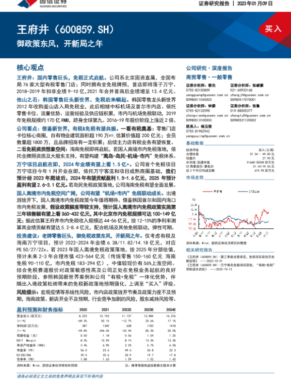 免税业务 国信证券 市场分析 王府井 零售行业