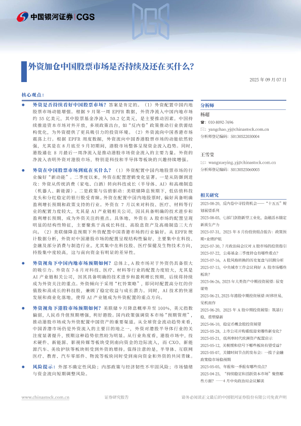 【银河证券】【202509】外资加仓中国股票市场是否持续及还在买什么?-12页