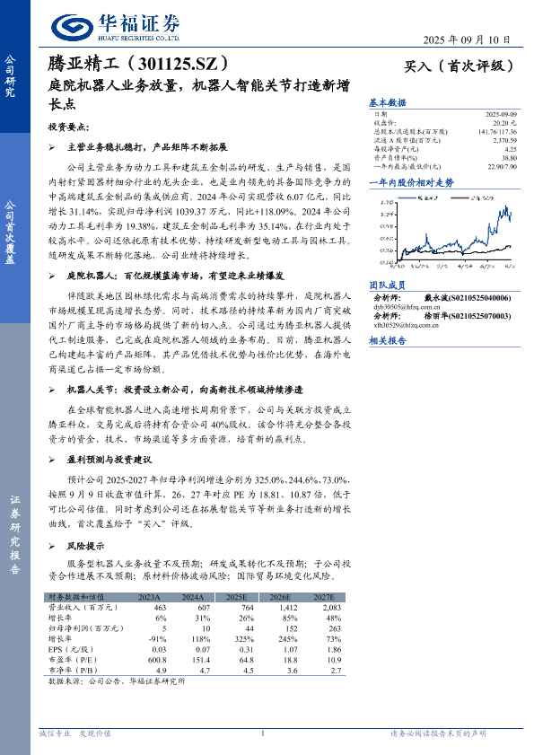 【华福证券】【202509】腾亚精工(301125.SZ)庭院机器人业务放量,机器人智能关节打造新增长点-26页