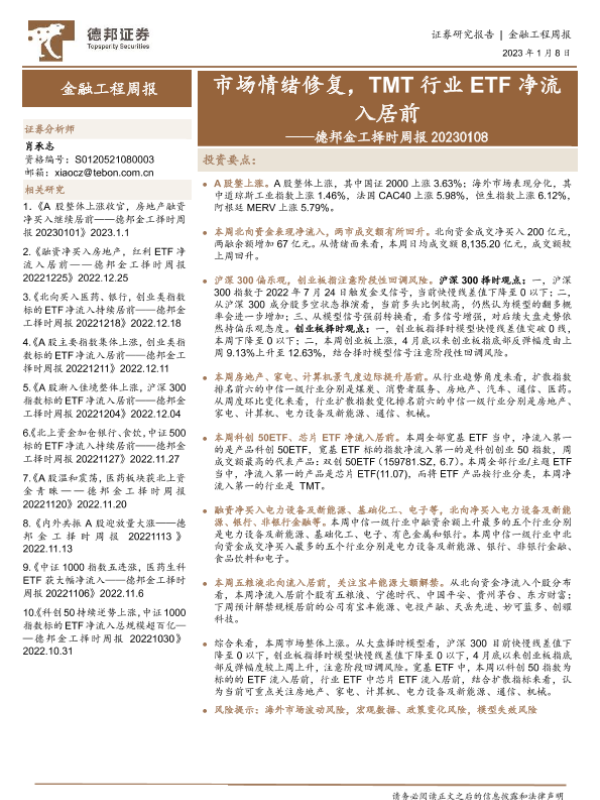 【德邦证券】【20230108】德邦金工择时周报:市场情绪修复,TMT行业ETF净流入居前-27页