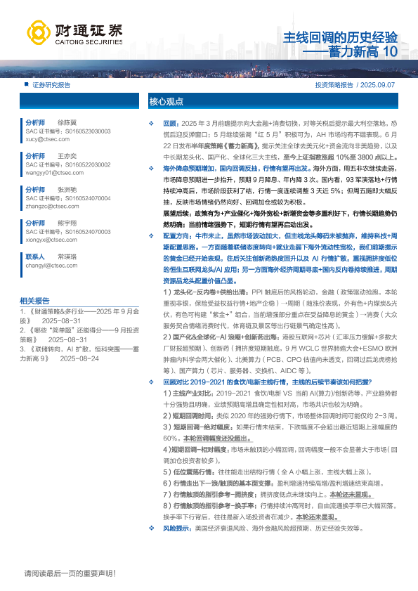 【财通证券】【202509】蓄力新高10:主线回调的历史经验-11页