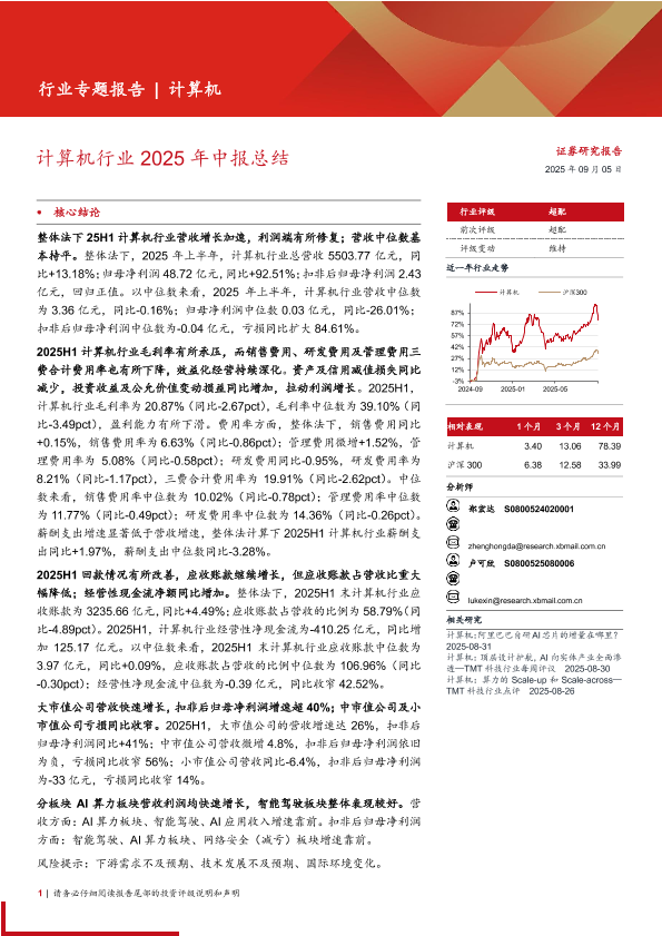 计算机行业 AI算力 投资评级 智能驾驶 中报总结