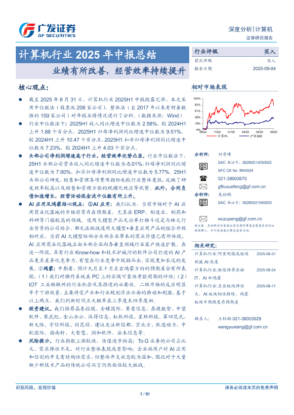 【广发证券】【202509】计算机行业 2025年中报总结:业绩有所改善,经营效率持续提升-31页