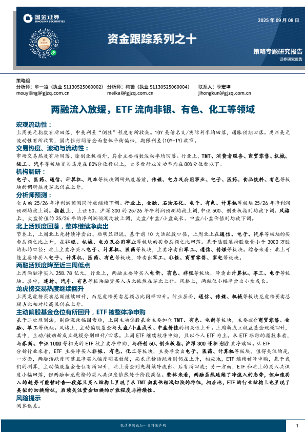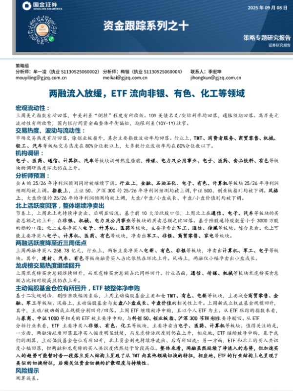 【国金证券】【202509】资金跟踪系列之十:两融流入放缓,ETF流向非银、有色、化工等领域-32页